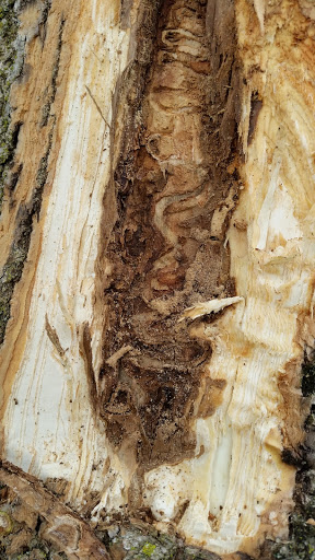 Emerald Ash Borer’s are not native to the United States. This invasive species likely came from Asia through shipping containers and survived for about 10 years before being discovered. As the name suggests, this green insect attacks ash trees. It spreads naturally and through human movement of infested firewood. The Emerald Ash Borer (EAB) creates D shaped holes in the tree. These holes are random throughout the tree and seem to have no uniform placement.